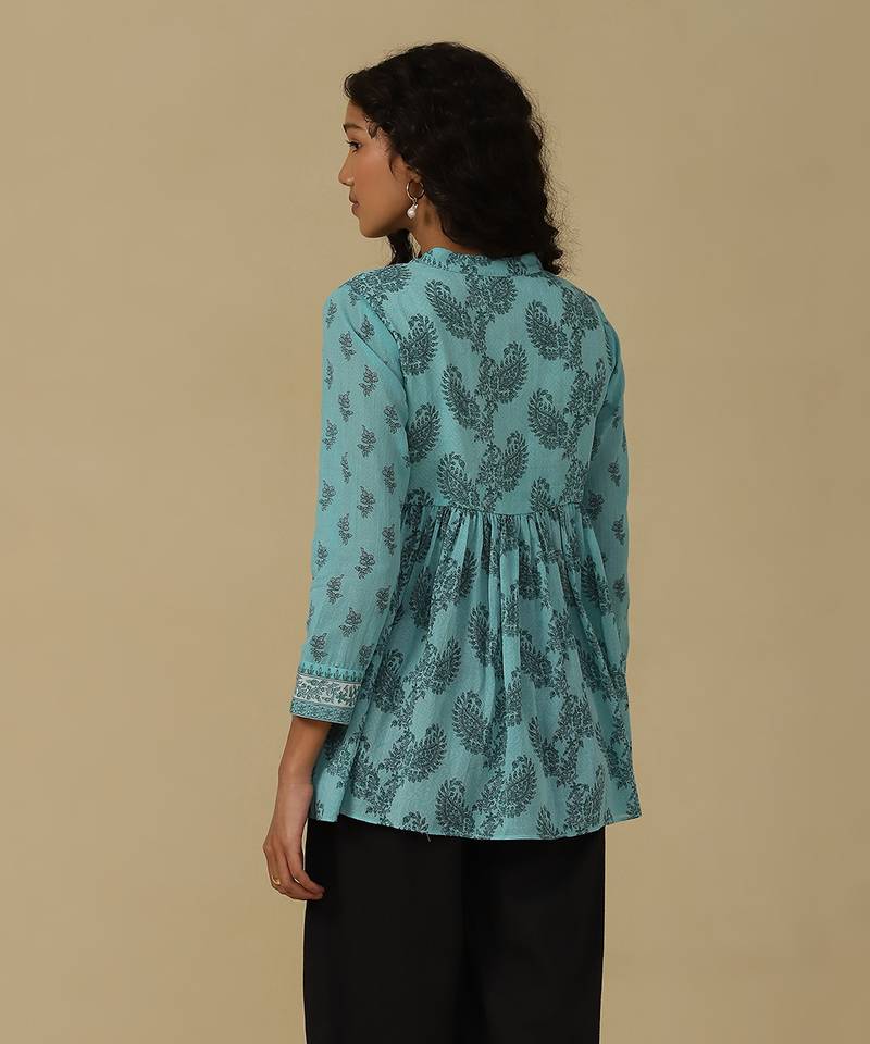 Aqua paisley print kurti with camisole
