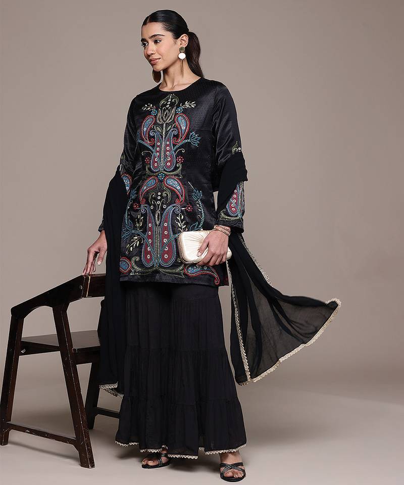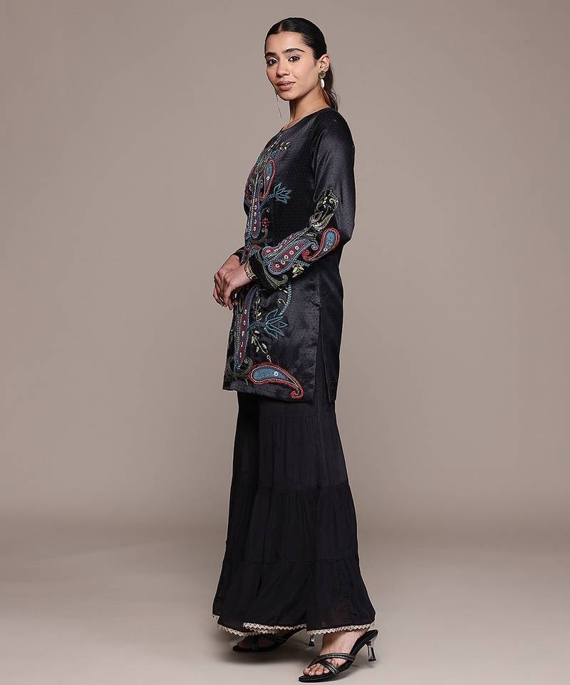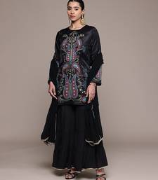 Black embroidered silk sharara set