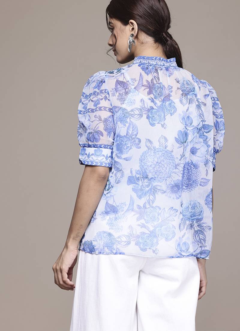 | Product Name | Blue Chiffon Top With Printed Work Design | |