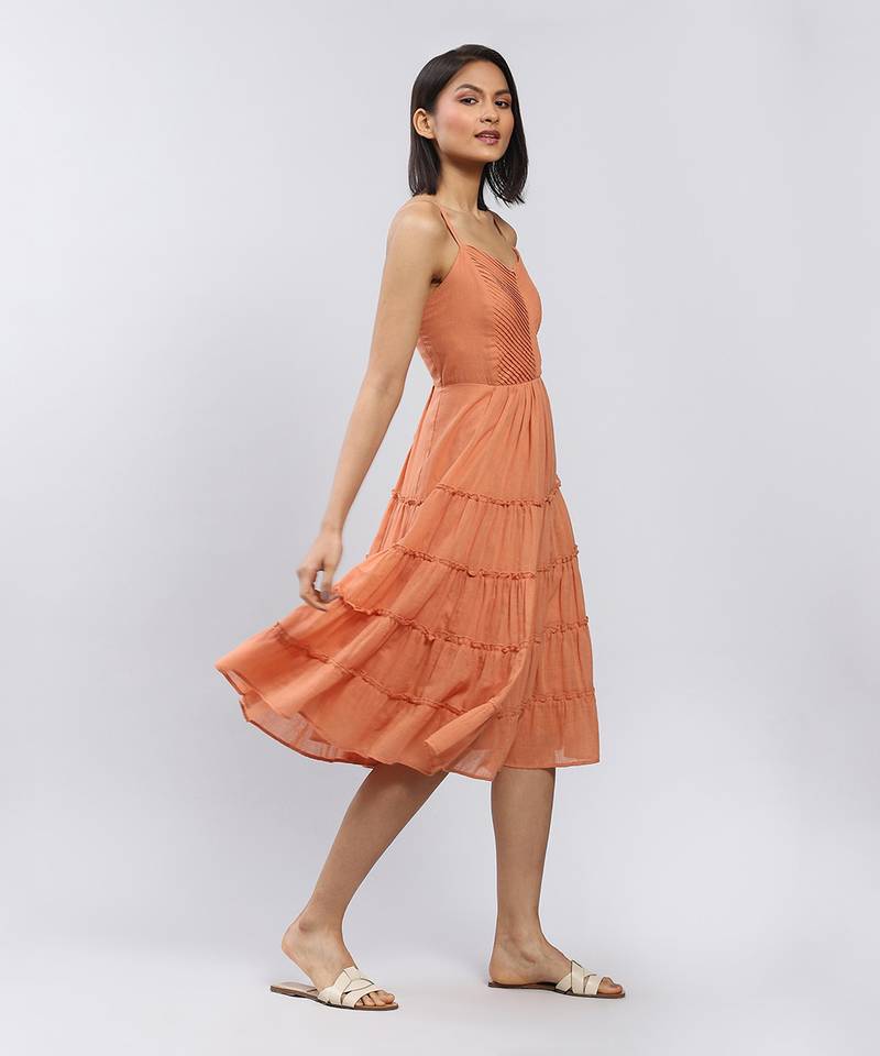 Brown strappy solid long dress