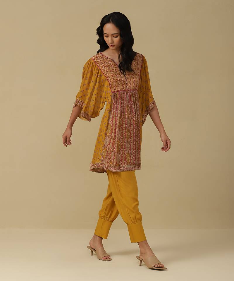 | Product Description | Featuring Mustard & Fuschia Printed Kurti With Pants.