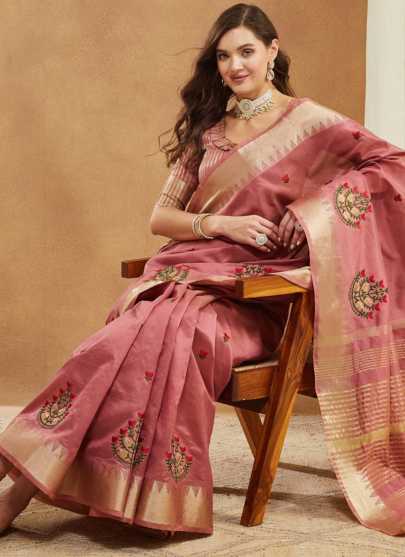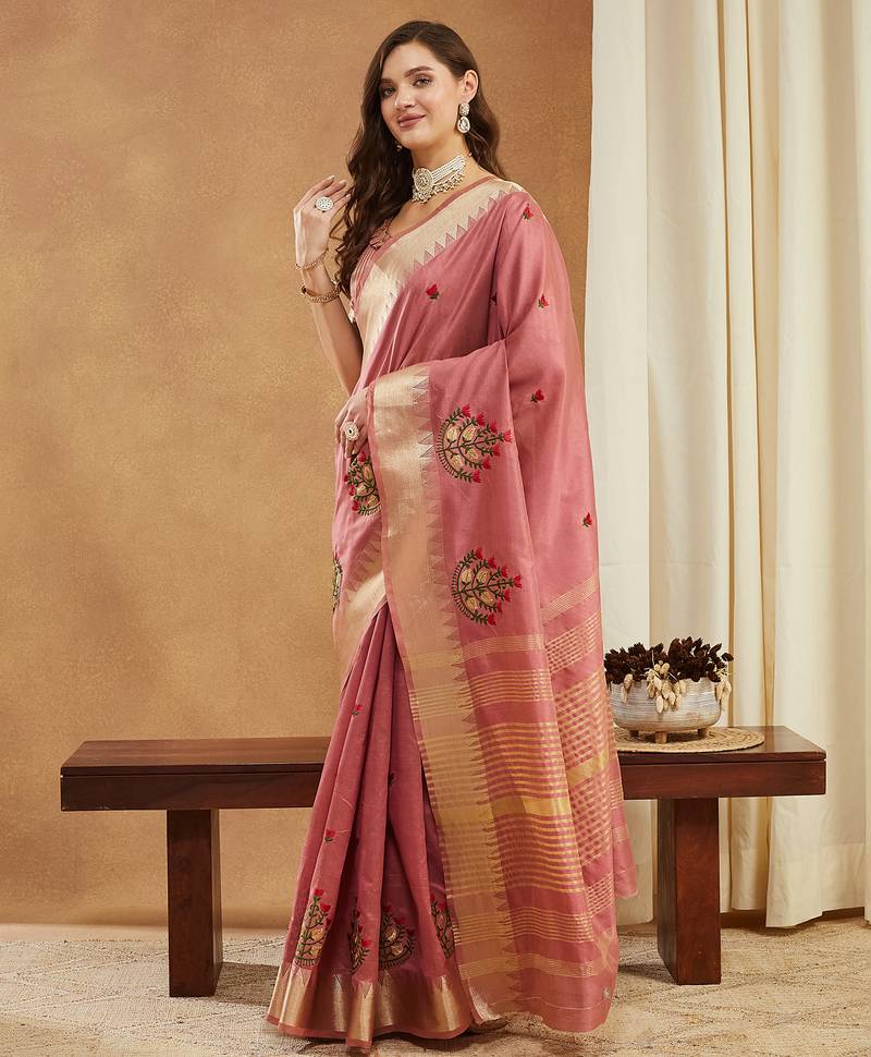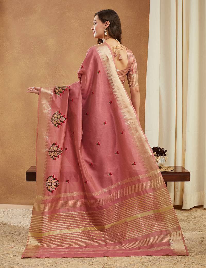 LightWine assam cotton art silk saree with embroidery with emple border