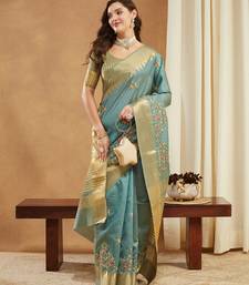 | • | Saree | : | Color- Turquoise / Fabric- Art Silk |