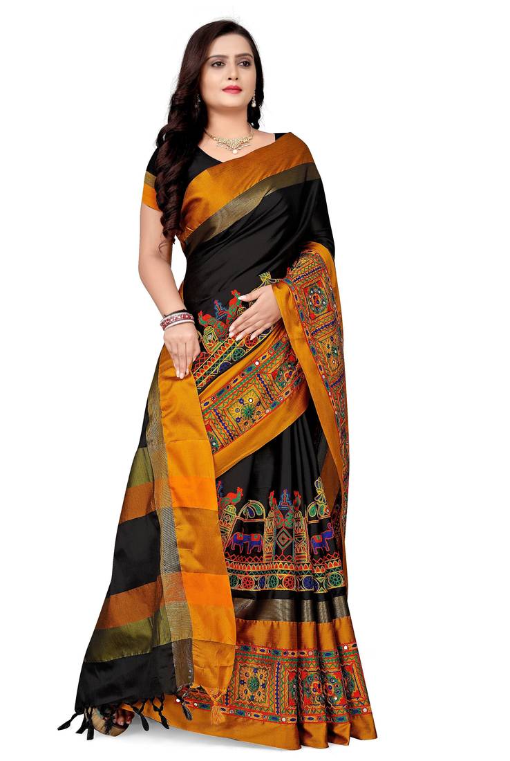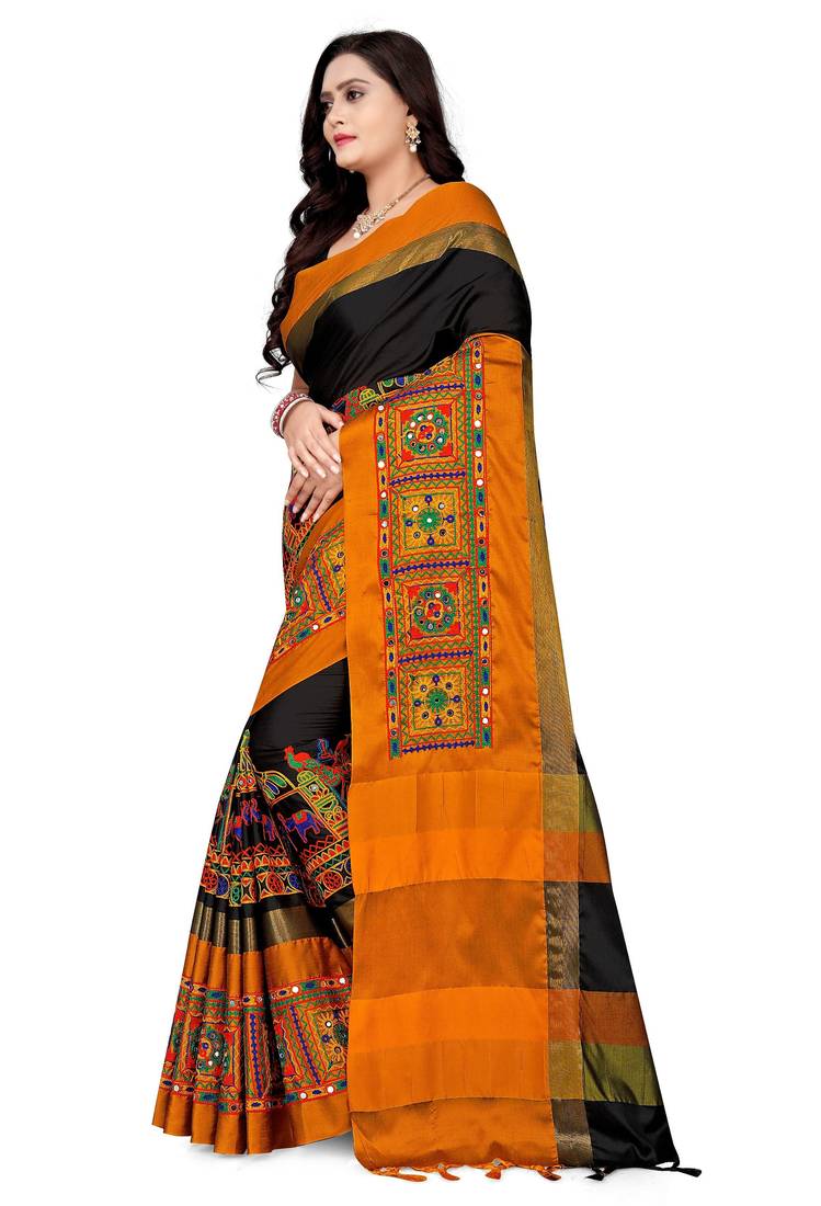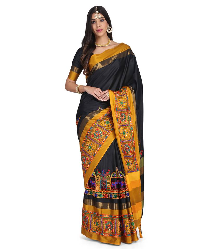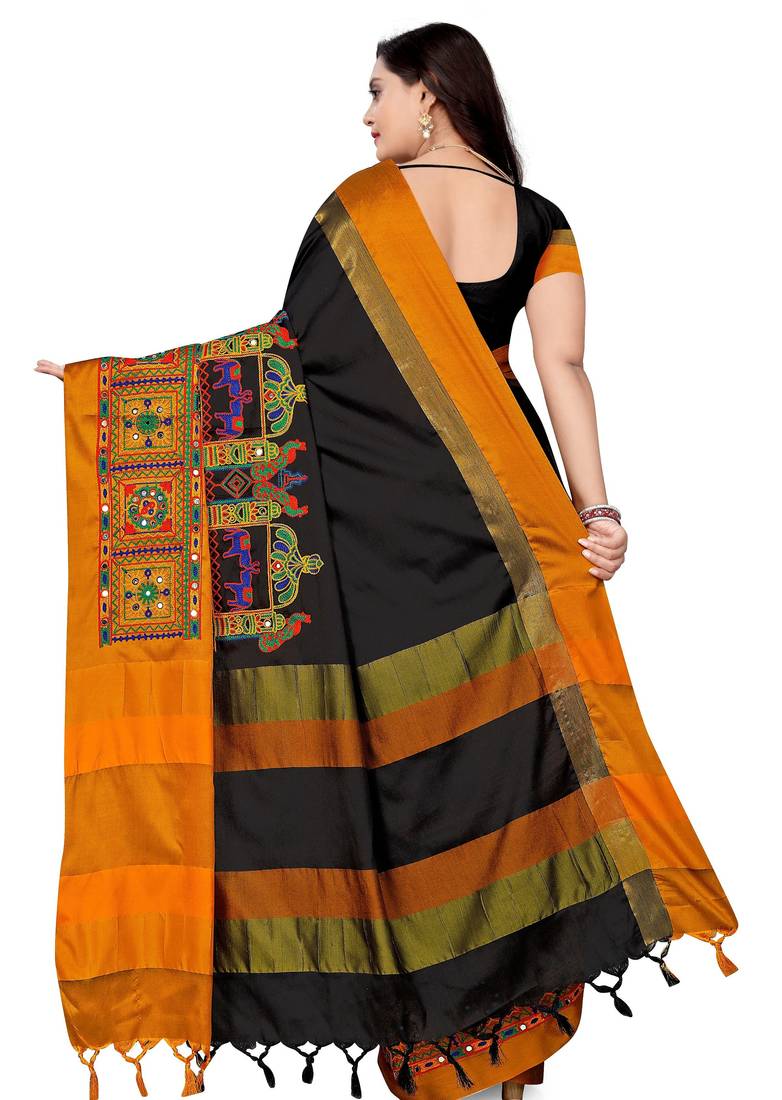 | Product Name | Black Cotton Silk With Kutchi Embroidered Work Party Wear Saree | |