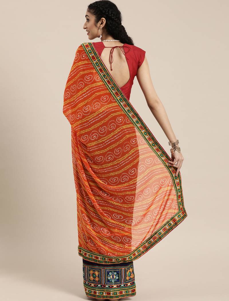 | Product Name | Orange Half And Half Bandhani Pallu Orange And Navy Blue Color Saree | |