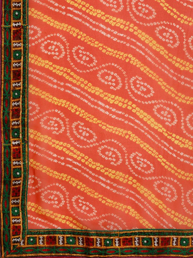 | Product Description | Enhance Your Ethnic Wardrobe With This Half And Half Bandhani Pallu Georgette Saree, Beautifully Crafted With Embroidery Work For A Graceful Traditional Look. Made From Premium Georgette Fabric, The Saree Features A Lightweight Drape And Smooth Texture That Ensures Comfort And Elegance. The Bandhani Pallu Design Adds Cultural Charm, While The Embroidery Detailing Brings Refined Beauty And Sophistication. Its Half And Half Pattern Creates A Stylish Contrast That Feels Both Modern And Traditional. Ideal For Festive Celebrations, Cultural Gatherings, Family Functions, And Special Occasions, This Women’s Embroidered Georgette Saree Blends Tradition With Elegance. Pair It With Statement Jewellery For A Refined Ethnic Look. |