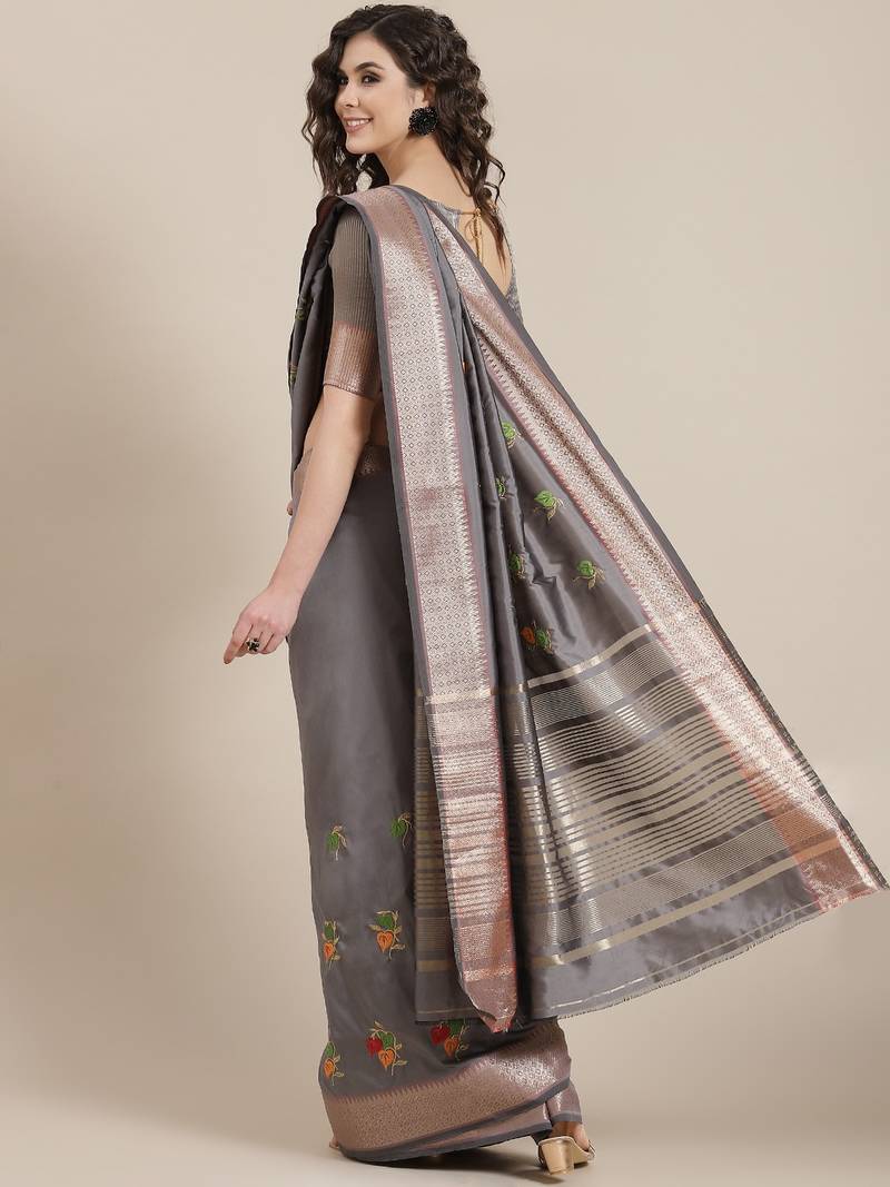 | Product Name | Grey Soft Cotton Silk With Colourful Thread Embroidery Saree With Blouse | |