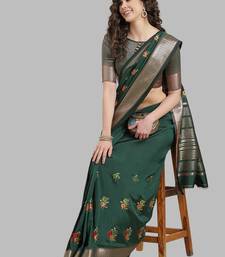 Green soft cotton silk with colourful thread embroidery saree with blouse