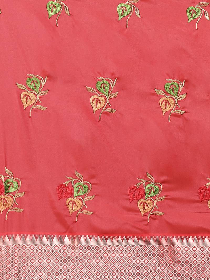 This Pink Soft Cotton Silk Saree Brings Together Comfort, Style, And Traditional Charm In The Most Effortless Way. The Fabric Feels Smooth On The Skin, Making It A Lovely Choice For Long Celebrations And Special Gatherings. Colourful Thread Embroidery Is Placed Beautifully Across The Saree, Adding A Lively Touch Without Making It Too Heavy.