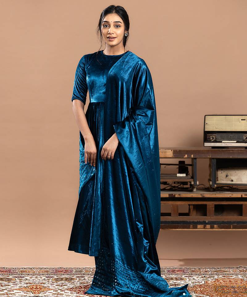 | Product Name | Blue Embroidered Velvet Anarkali Set | |