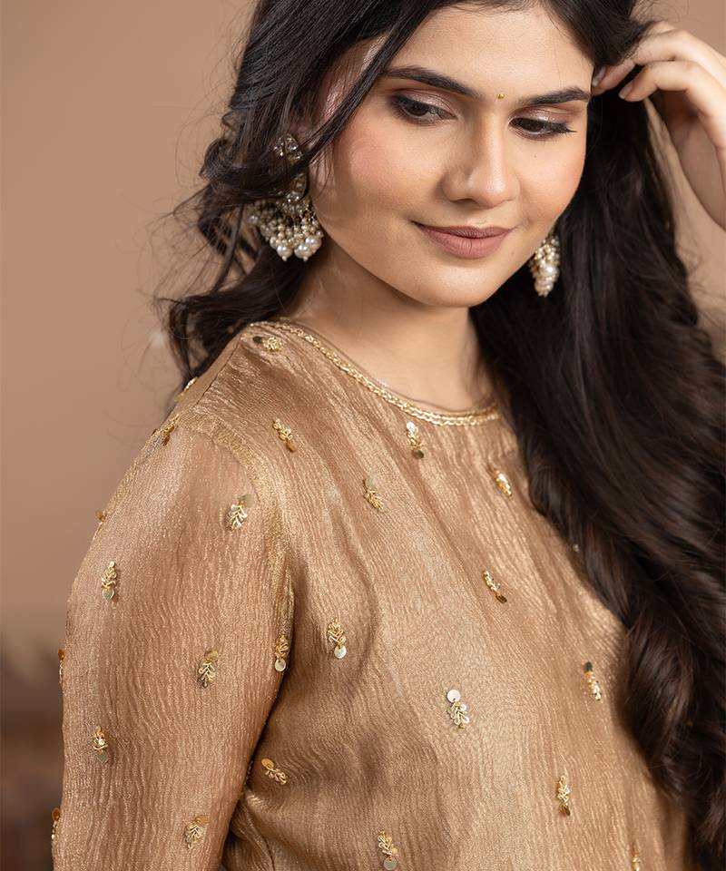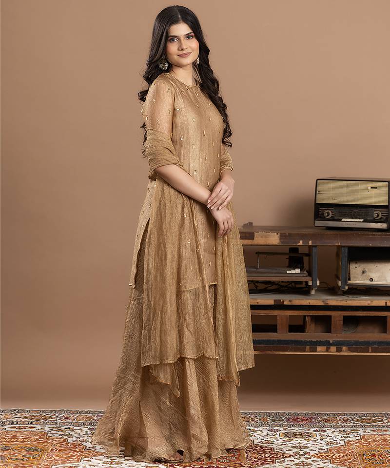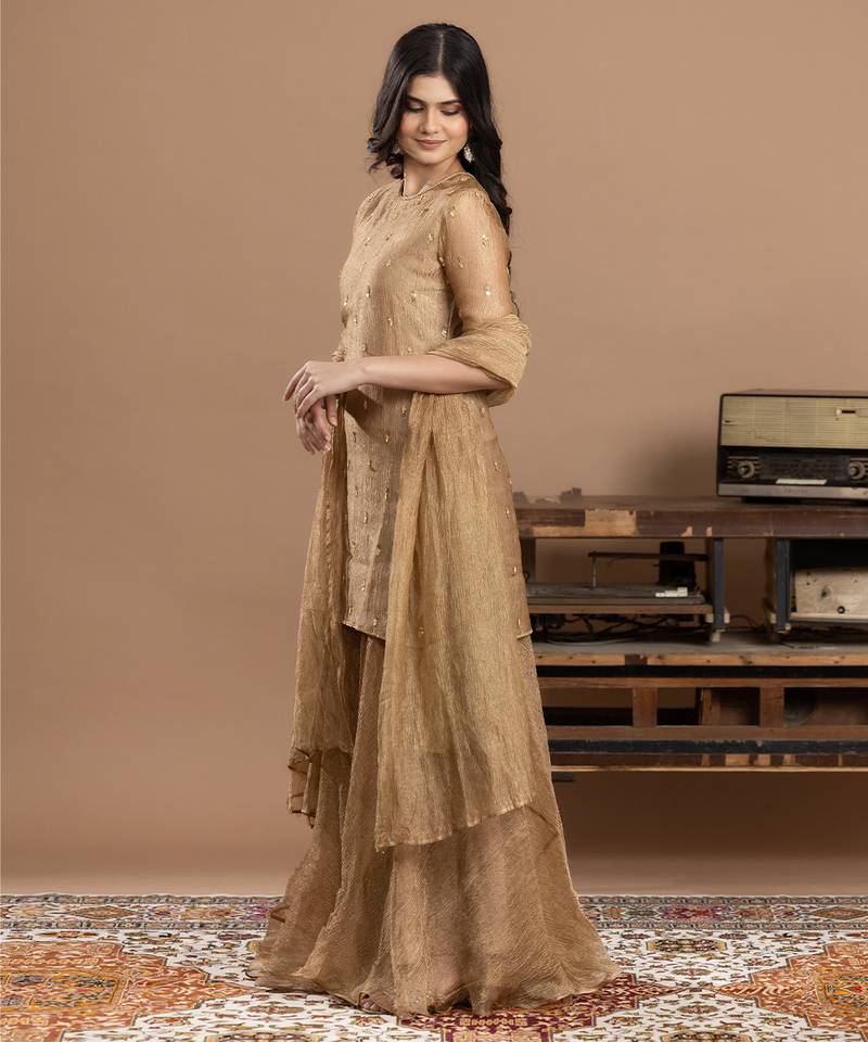 | Product Name | Gold Embroidered Organza Sharara Set | |