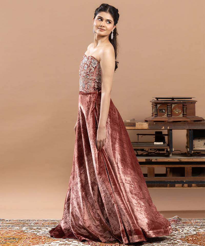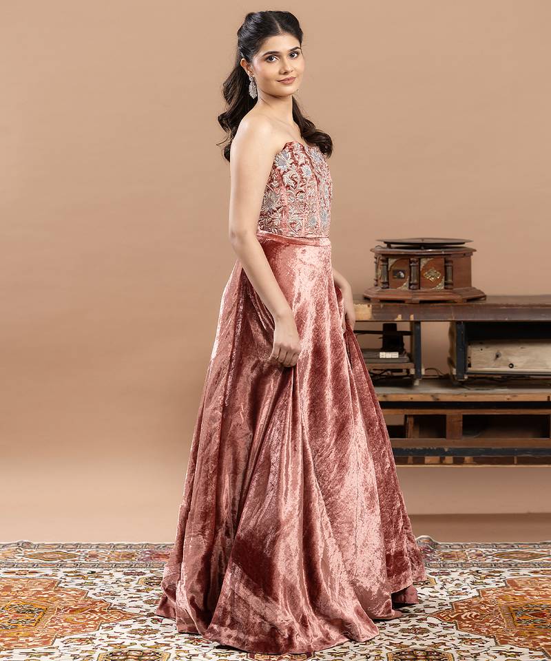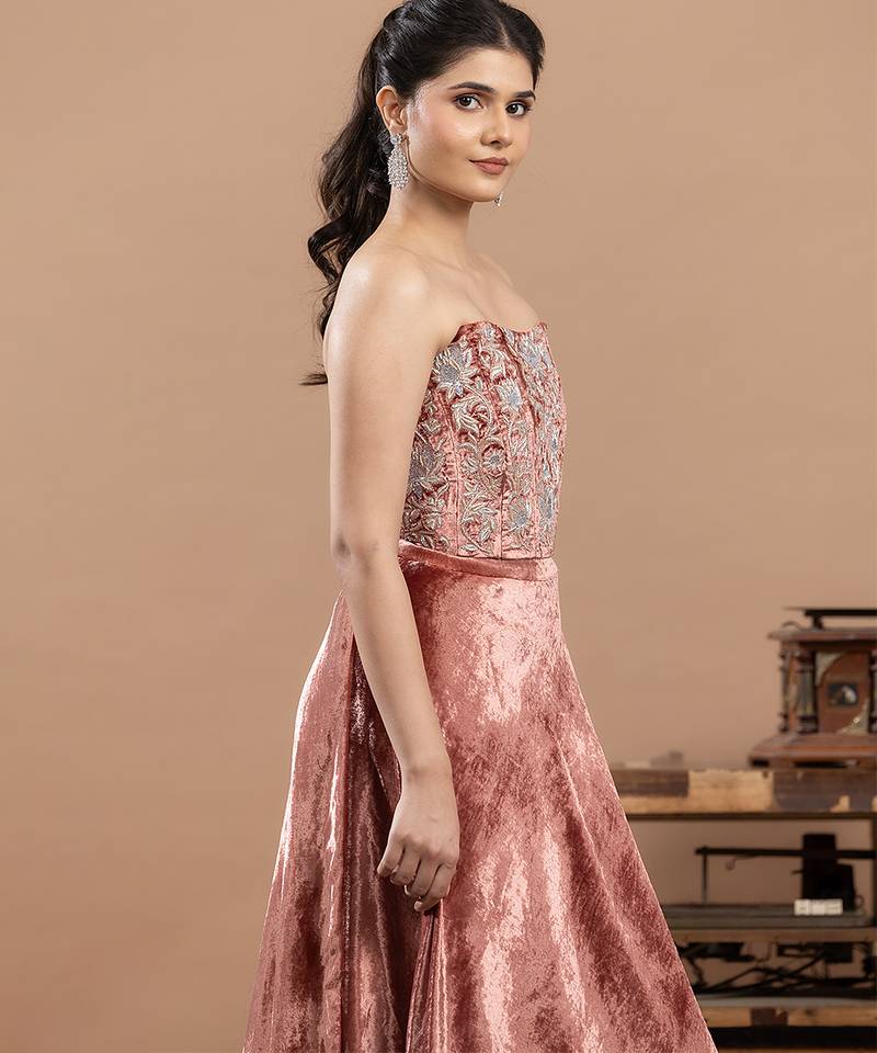 Pink velvet lehenga with embroidered work