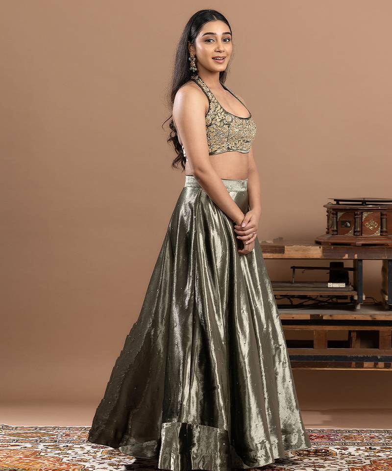 | Product Description | Make A Grand Entrance At Weddings, Festive Celebrations, And Special Occasions With This Sage Green Velvet Lehenga With Embroidered Work A Luxurious Ethnic Ensemble Designed To Turn Heads! Crafted From Premium Velvet In A Soft Sage Green Hue, This Lehenga Features Intricate Embroidery That Adds Rich Texture And Regal Appeal To Your Look. The Luxurious Fabric And Detailed Design Deliver Timeless Elegance, Making It Perfect For Receptions, Sangeet Nights, And Cultural Festivities. This Set Includes A Coordinating Velvet Blouse With Subtle Sequin Accents That Complement The Embroidered Lehenga Beautifully. |
