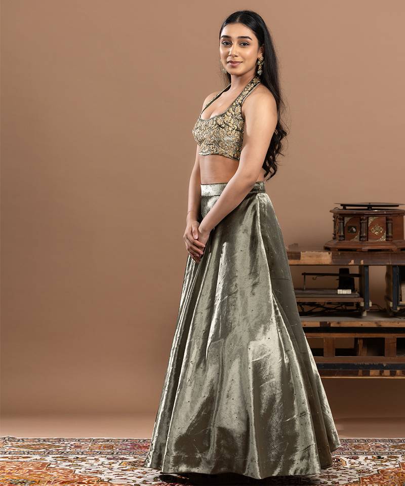 | Product Name | Sage Green Velvet Lehenga With Embroidered Work | |