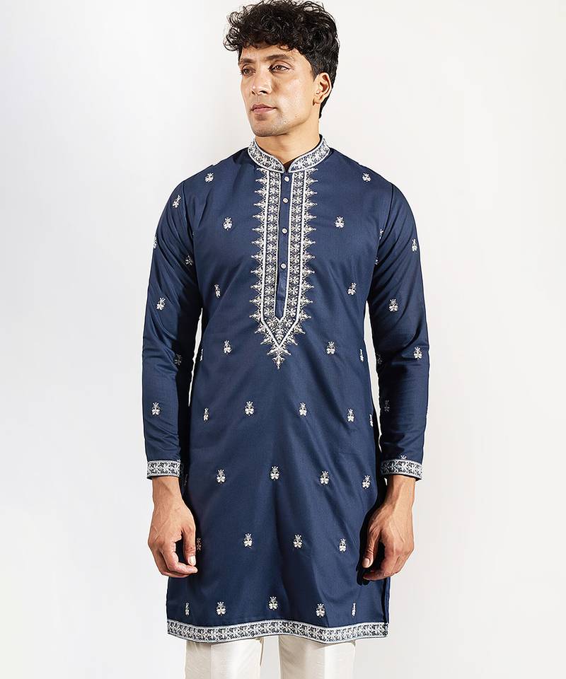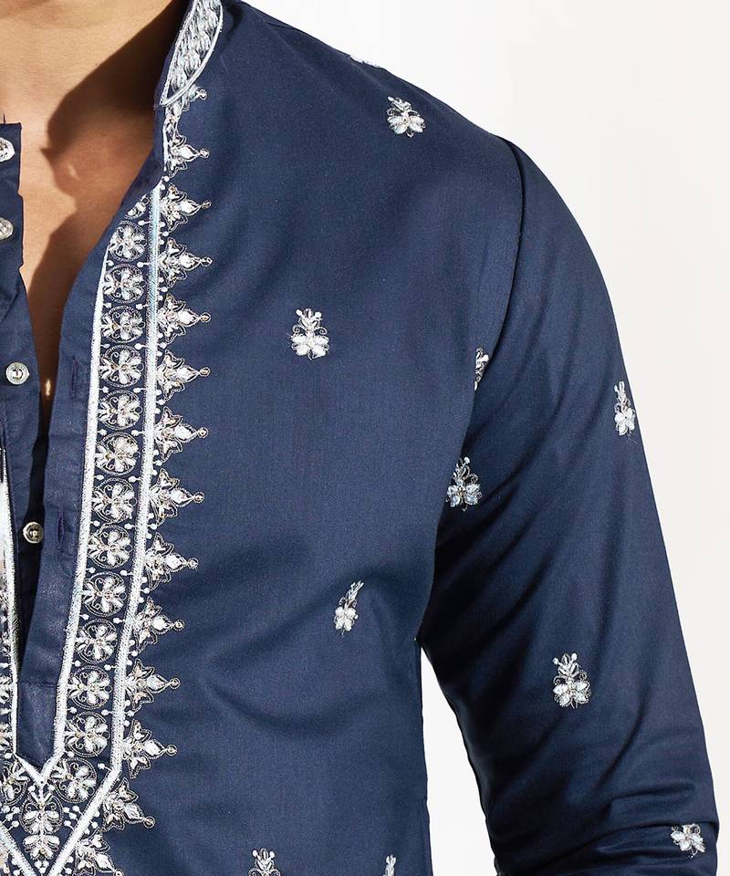 | Product Name | Blue Embroidered Cotton Silk Kurta Pajama | |