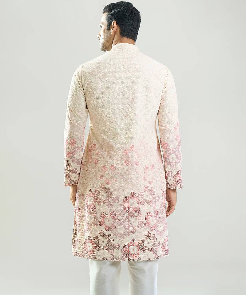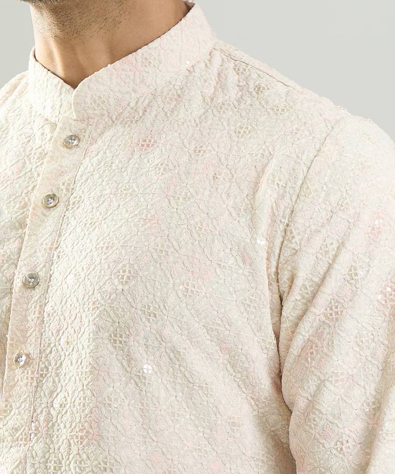 White embroidered cotton silk kurta pajama