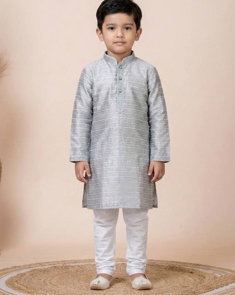 | Product Name | Grey Festive Wear Designer Jacquard Boys Kurta Pyjama | |