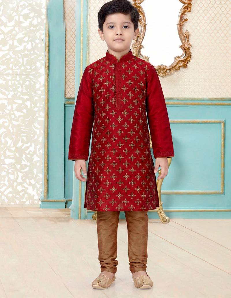 | Product Name | Maroon Festive Wear Designer Silk Boys Kurta Pyjama | |
