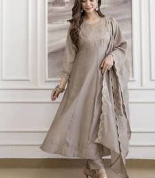 Chiku color beautiful vichitra silk fabric graceful ceremonial kurti set