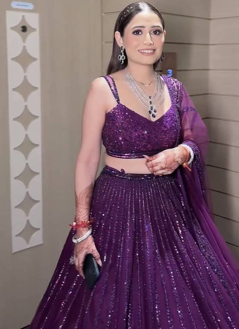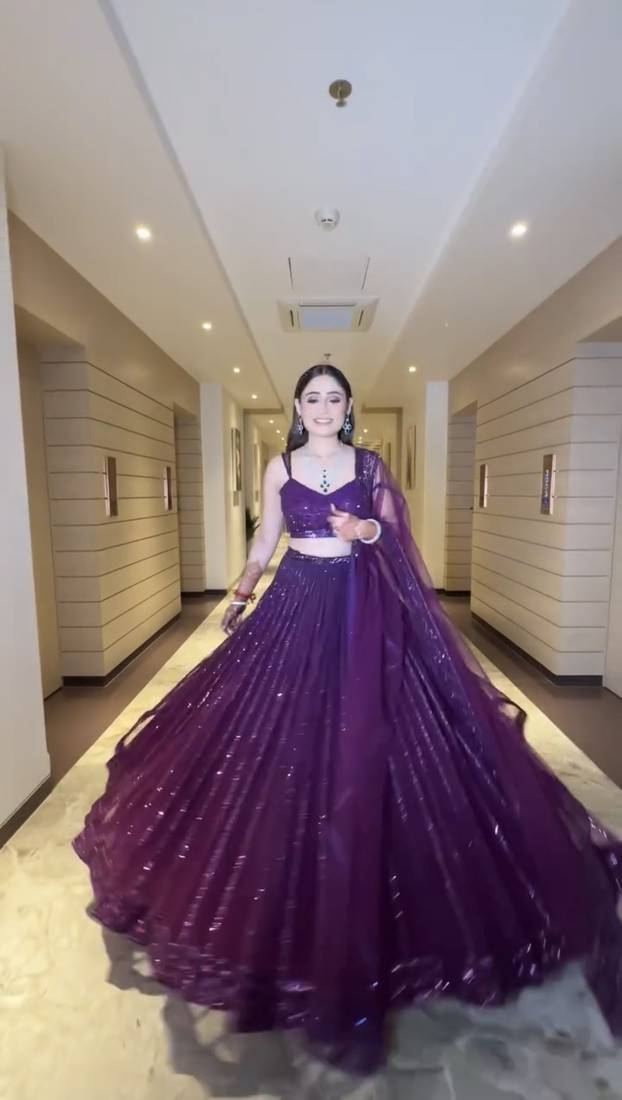 Purple net lehenga with heavy sequins and dori work | designer party wear wedding lehenga choli with blouse
