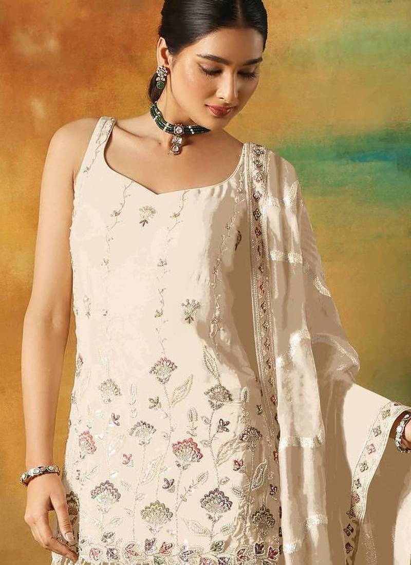 | Product Name | White Embroidered Georgette Stitched Palazzo Style Salwar Suit | |