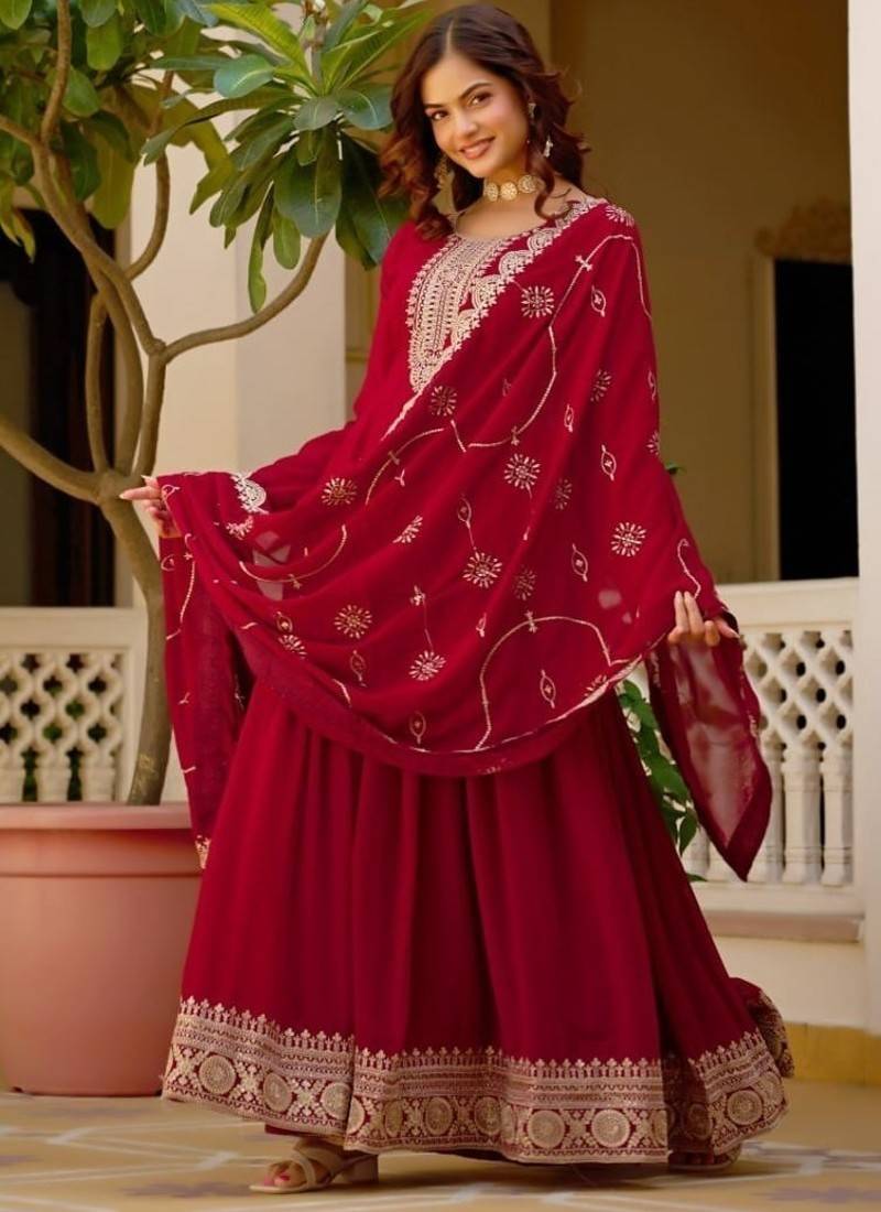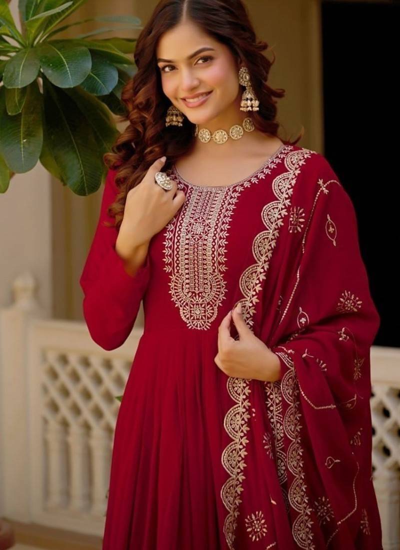 | Product Name | Maroon Faux Blooming Gown With Sequins Embroidery | |
