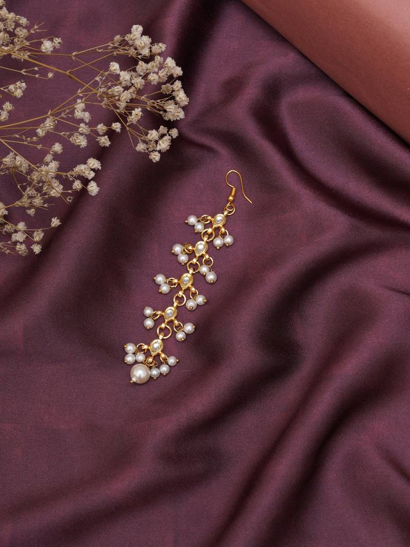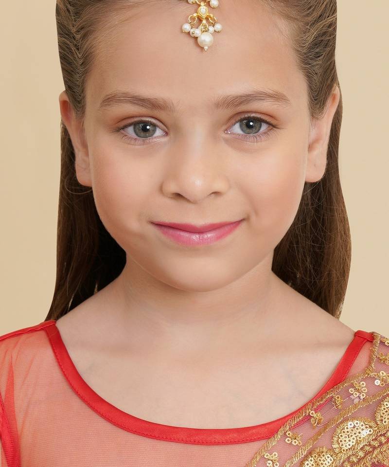 Product Description | Girls Gold Plated Kundan Studded & Beaded Maang Tikka |