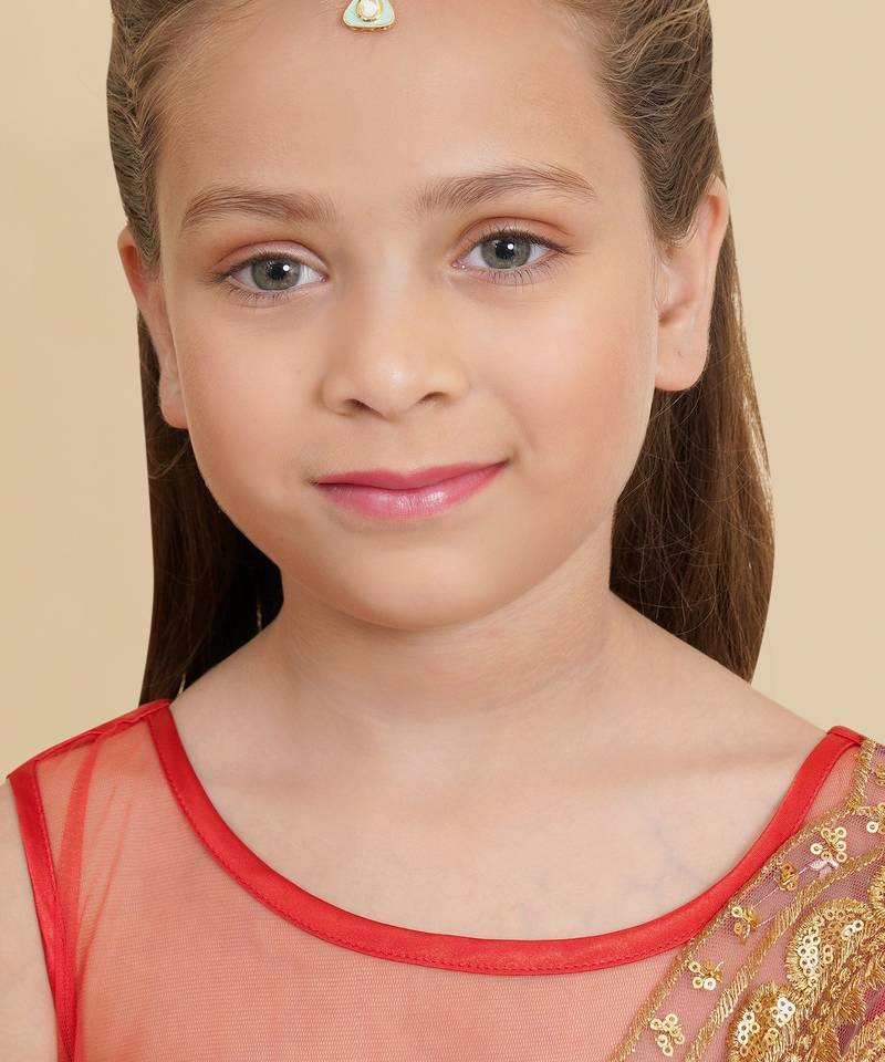 Girls gold-plated kundan-studded beads beaded enamelled maang tikka