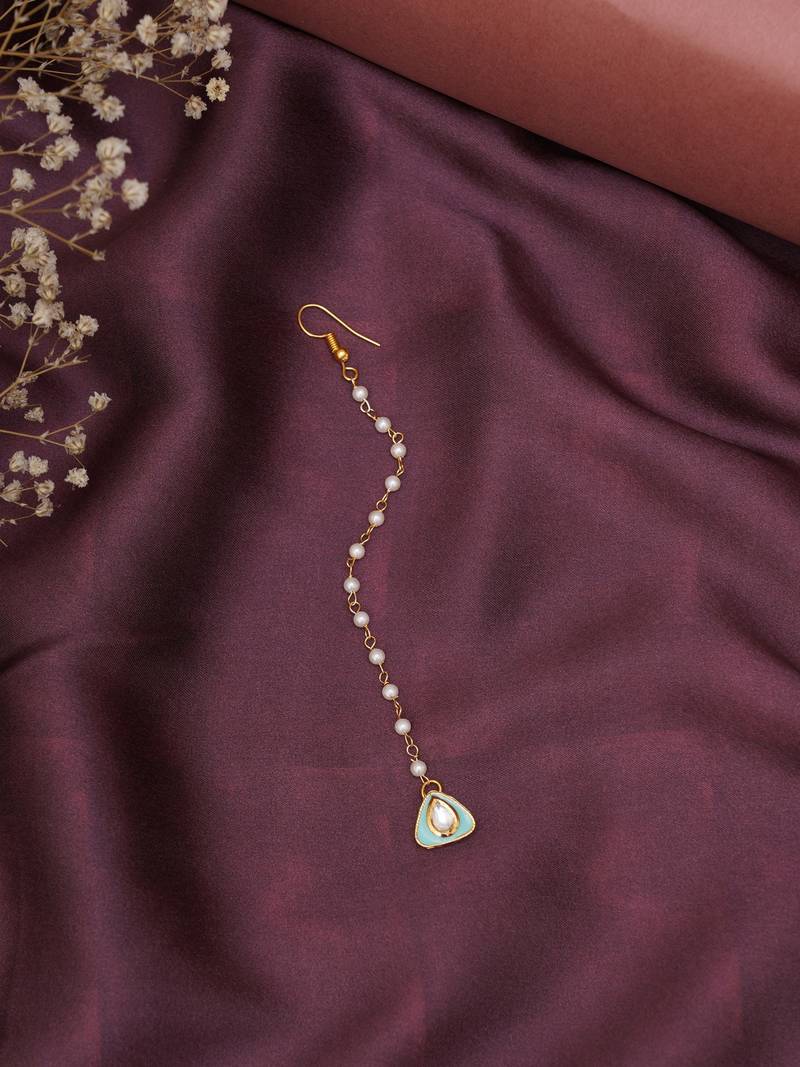 Product Description | Girls Gold Plated Kundan Studded Beads Beaded Enamelled Maang Tikka |