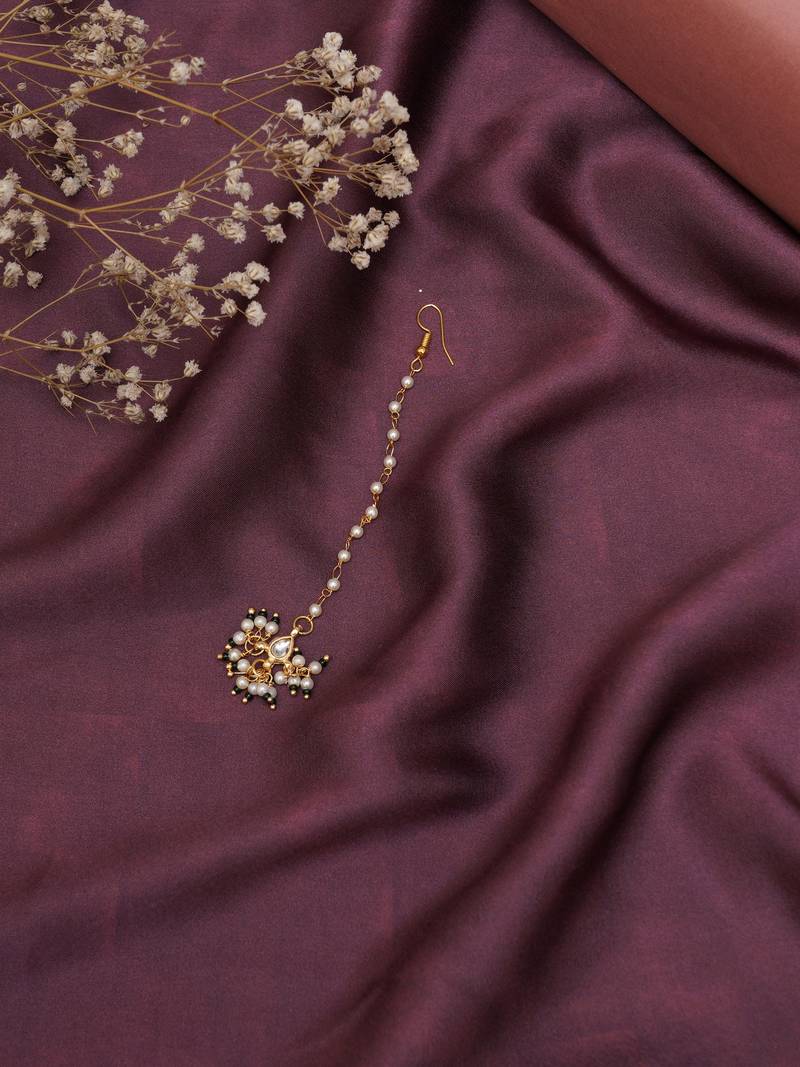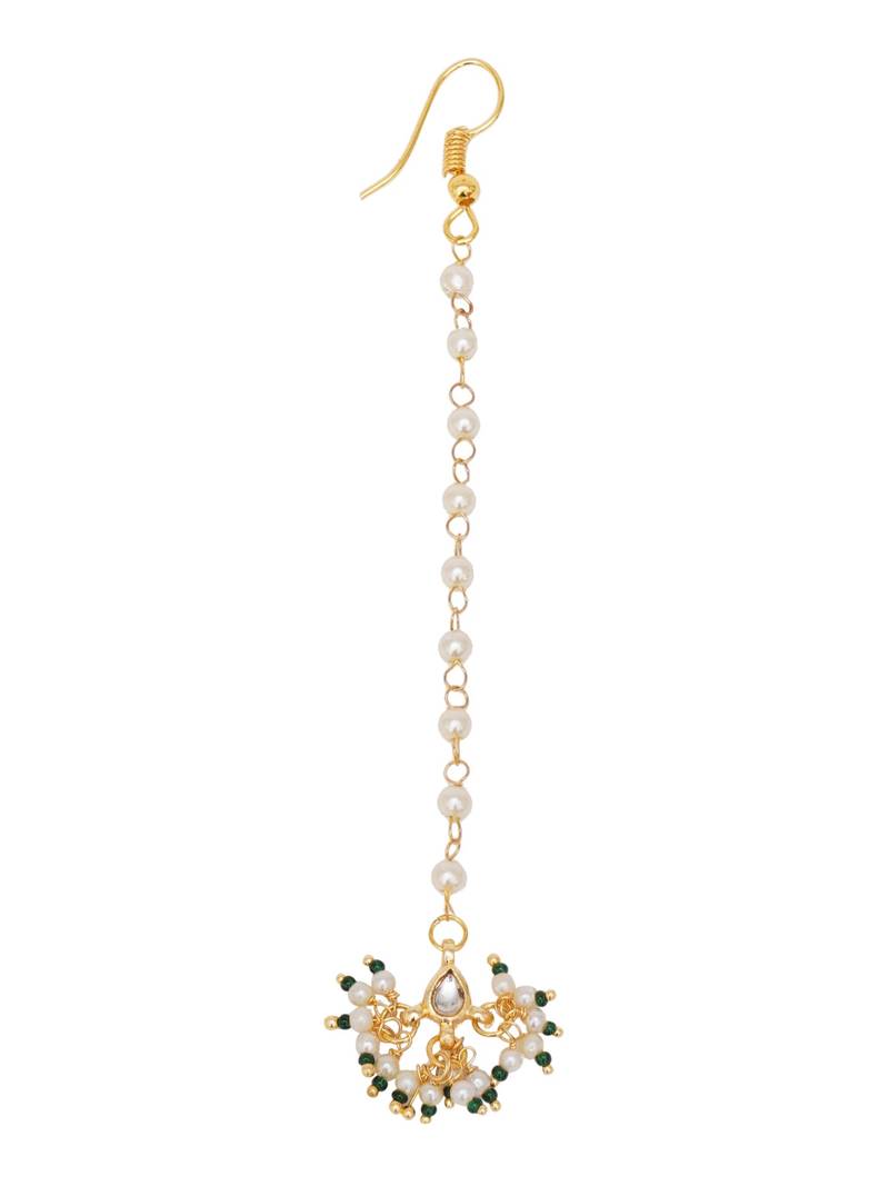 Product Description | Girls Gold Plated Kundan Studded Beads Beaded Maang Tikka |