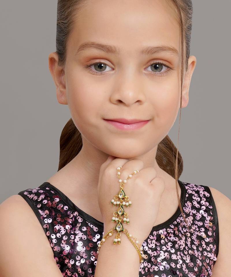 Product Name | Girls Gold Plated Kundan Studded & Beads Beaded Ring Bracelet | |