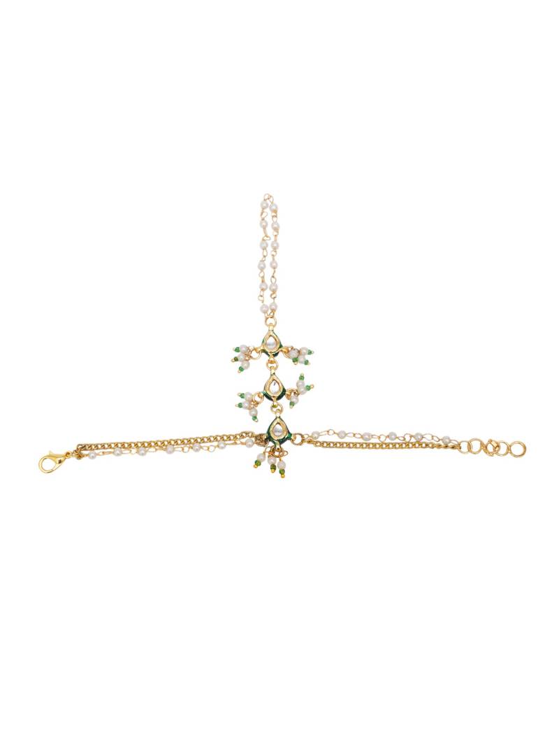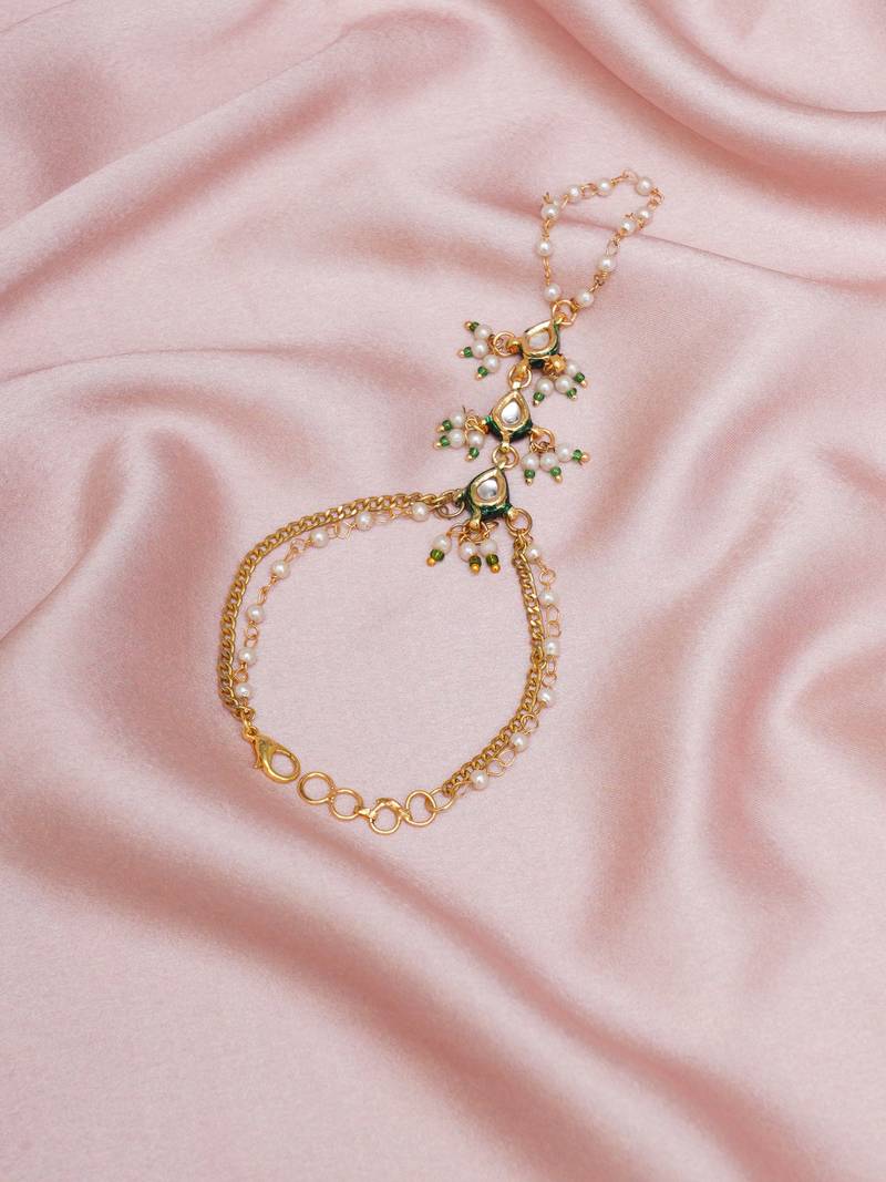 Product Description | Girls Gold Plated Kundan Studded & Beads Beaded Ring Bracelet |