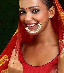 | Product Description | This Gold Plated Kundan Pearl Nose Ring With Chain Exudes Regal Elegance With Its Intricate Craftsmanship And Traditional Design. Adorned With Classic Kundan Detailing, It Adds A Festive, Graceful Touch. Perfect For Weddings, Bridal Wear, And Special Occasions, It Beautifully Complements Ethnic Ensembles With Timeless Charm And Refined Sophistication.