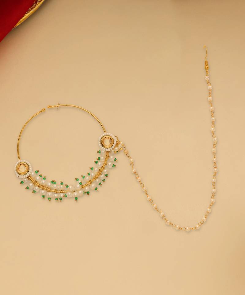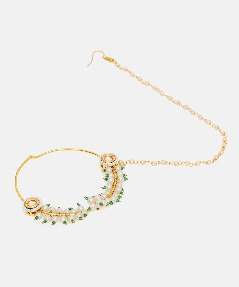 | Product Name | Gold Plated Kundan Pearl Nose Ring With Chain | |