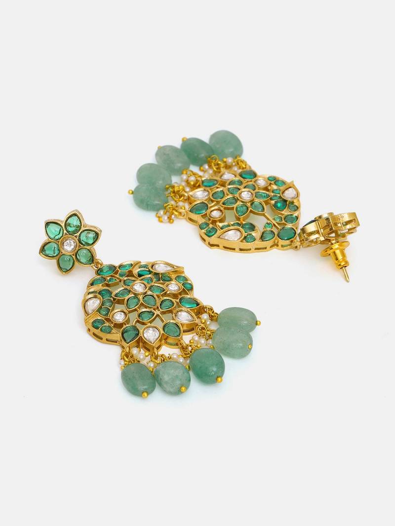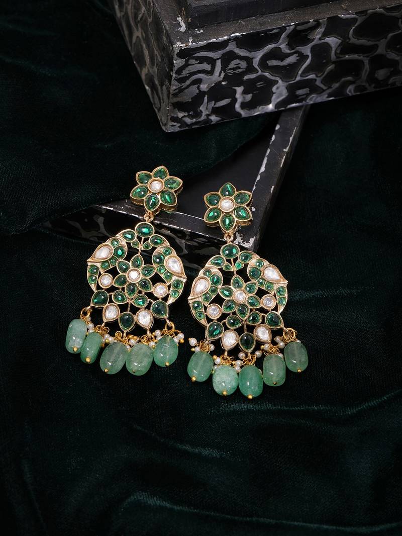 | Product Name | Gold Plated Kundan Green Stone Dangler Earrings | |