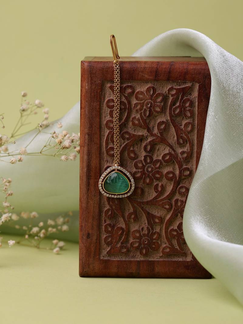 | Product Name | Gold Plated Kundan Green Stone Maang Tikka | |