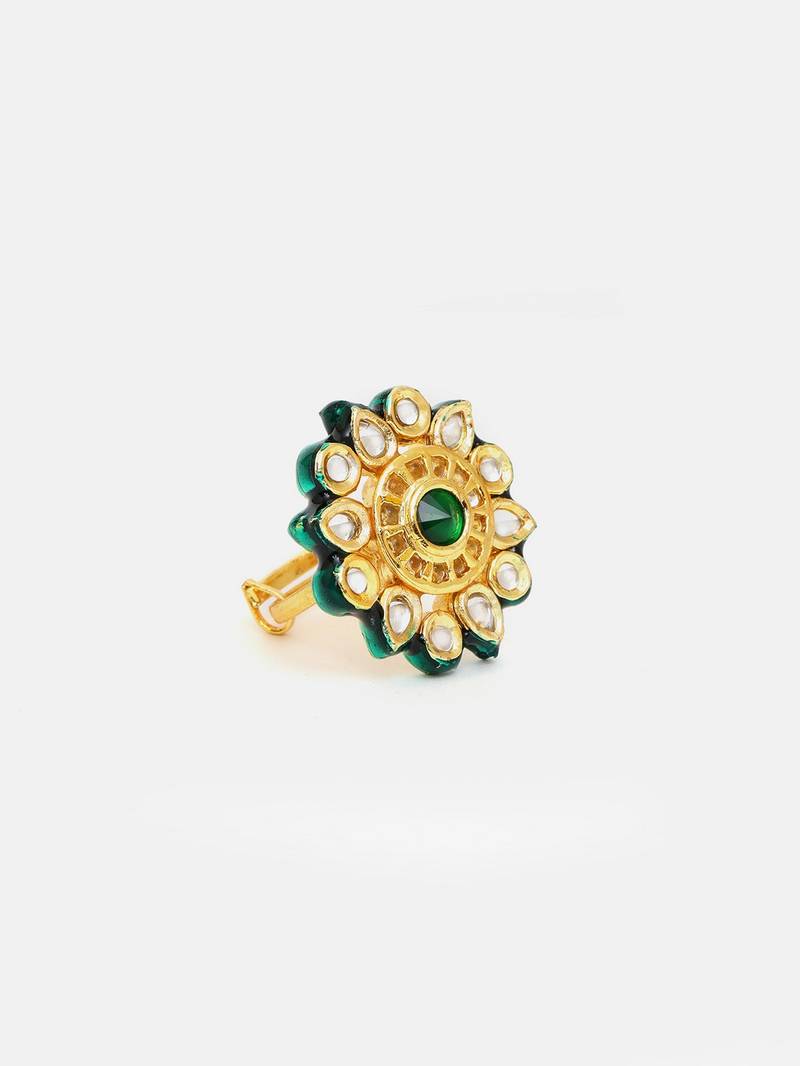 | Product Name | Gold Plated Kundan Green Stone Ring | |