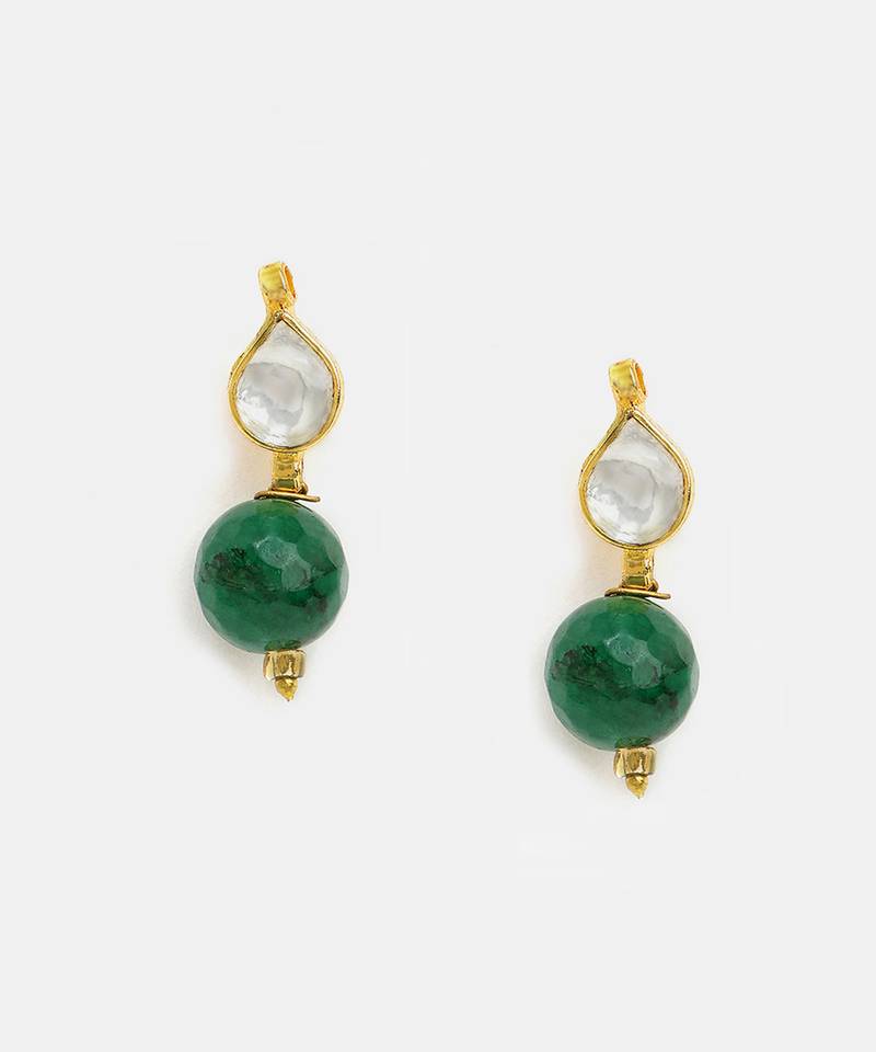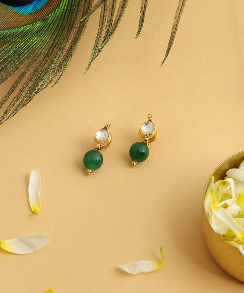 | Product Description | Featuring Rich Green Stones, These Gold Plated Kundan Earrings Reflect Classic Indian Craftsmanship And Royal Appeal. The Intricate Design Creates A Festive And Elegant Accent, Perfect For Weddings And Special Events. They Pair Seamlessly With Traditional Outfits, Enhancing Ethnic Ensembles With Sophistication And Timeless Charm.