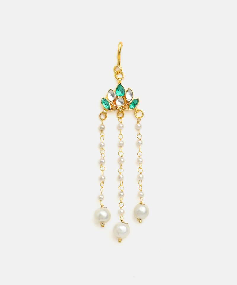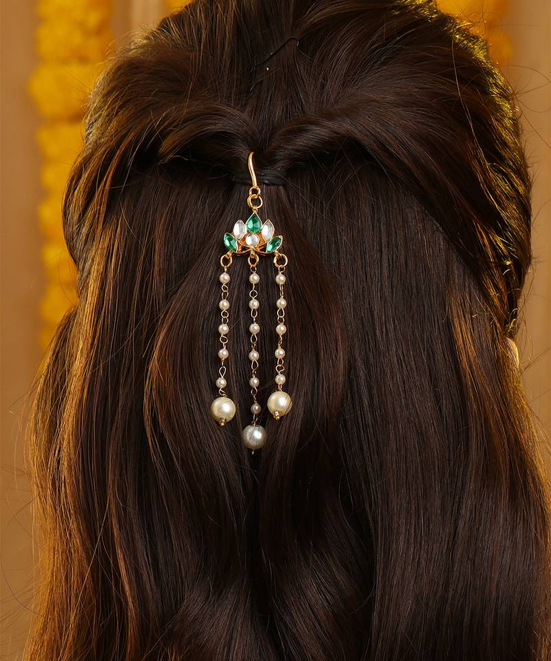 | Product Description | Featuring Luminous Green Stones, This Gold Plated Kundan Hair Clip Reflects Classic Elegance And Intricate Detailing. Designed For Comfort And Secure Wear, It Beautifully Enhances Bridal And Festive Hairstyles. A Perfect Accessory For Traditional Occasions, It Pairs Seamlessly With Ethnic Ensembles For A Polished Finish.