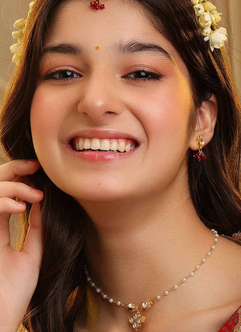 | Product Description | This Elegant Gold Plated Kundan Necklace Set Features Rich Maroon Stones That Add Depth And Royal Charm. Crafted With Traditional Detailing, It Highlights Intricate Craftsmanship And A Radiant Finish. Ideal For Weddings And Festive Occasions, It Pairs Beautifully With Ethnic Ensembles For A Luxurious And Graceful Look.