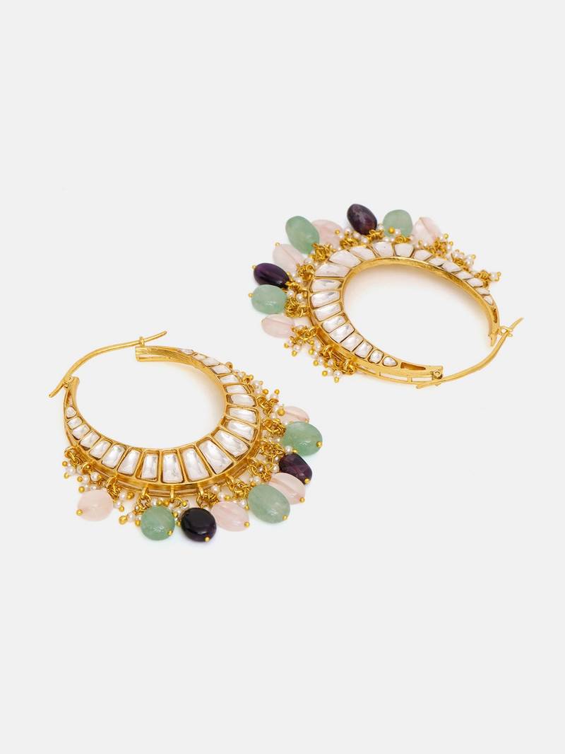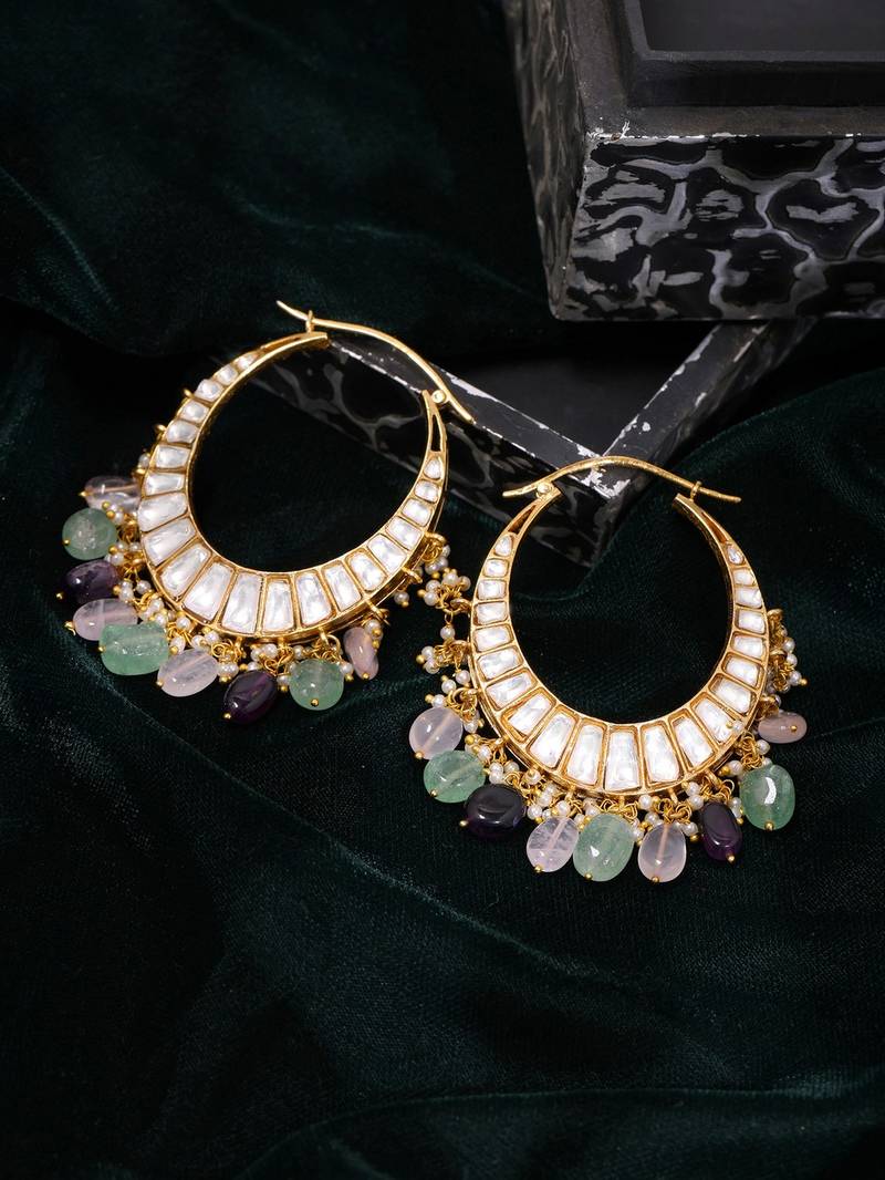 | Product Name | Gold Plated Kundan Multicolor Stone Hoop Earrings | |