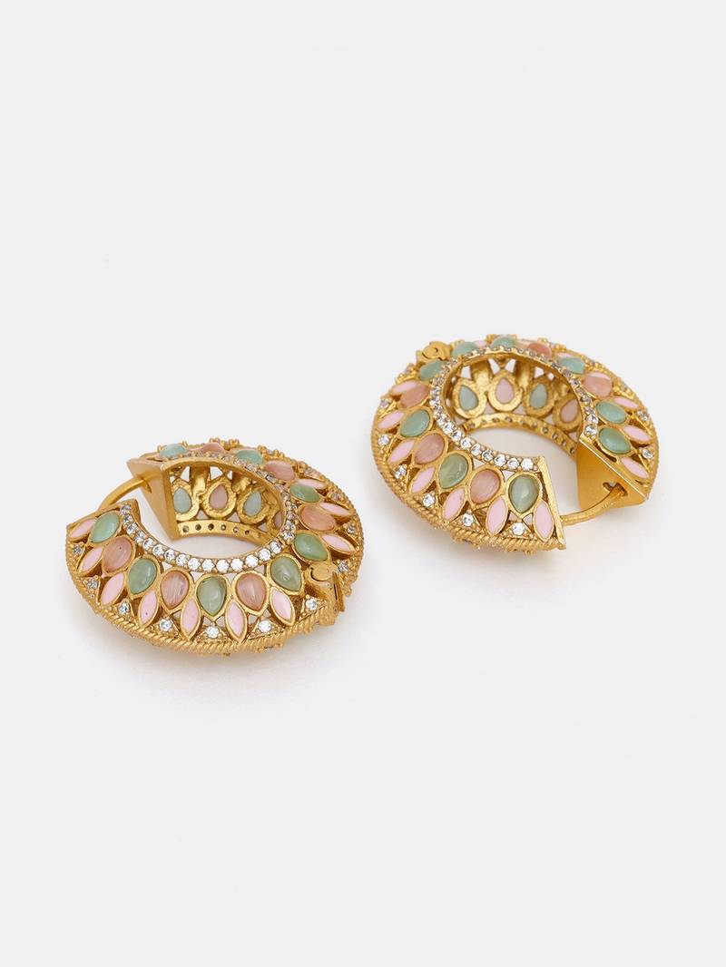 | Product Name | Gold Plated Kundan Multicolor Stone Hoop Earrings | |