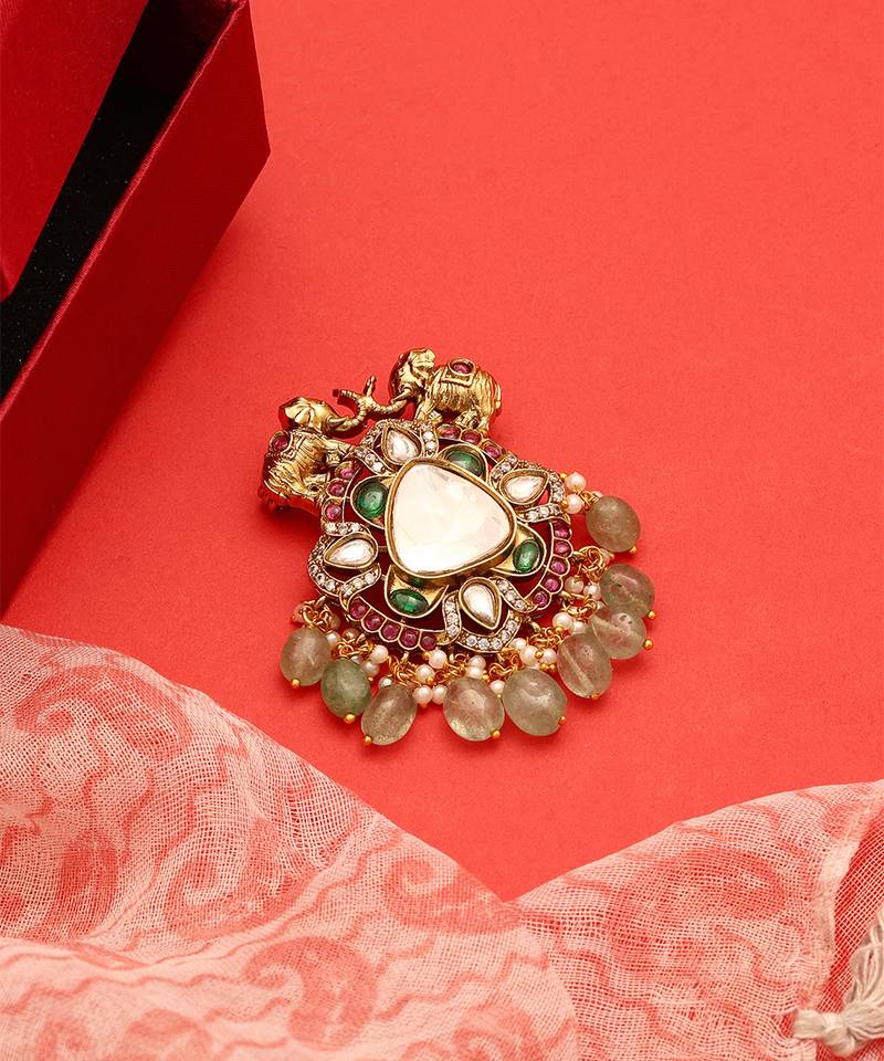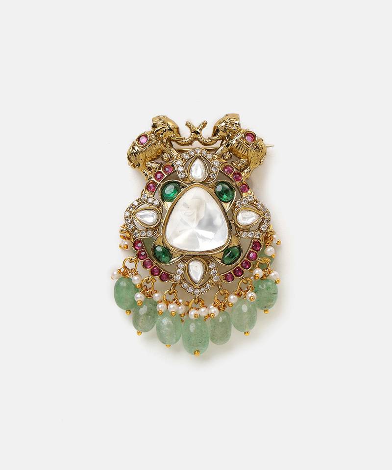 | Product Description | This Gold Plated Kundan Multicolor Stones Brooch Features Vibrant Hues And Intricate Craftsmanship. Embellished With Multicolor Stones And Traditional Kundan Work, It Brings A Lively And Royal Charm To Any Outfit. Ideal For Festive Occasions And Weddings, This Brooch Complements Sherwanis, Bandhgalas, And Ethnic Wear.