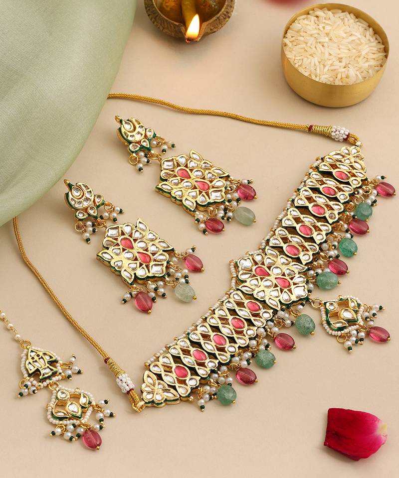 | Product Name | Gold Plated Kundan Multicolor Stones Choker Necklace Set | |