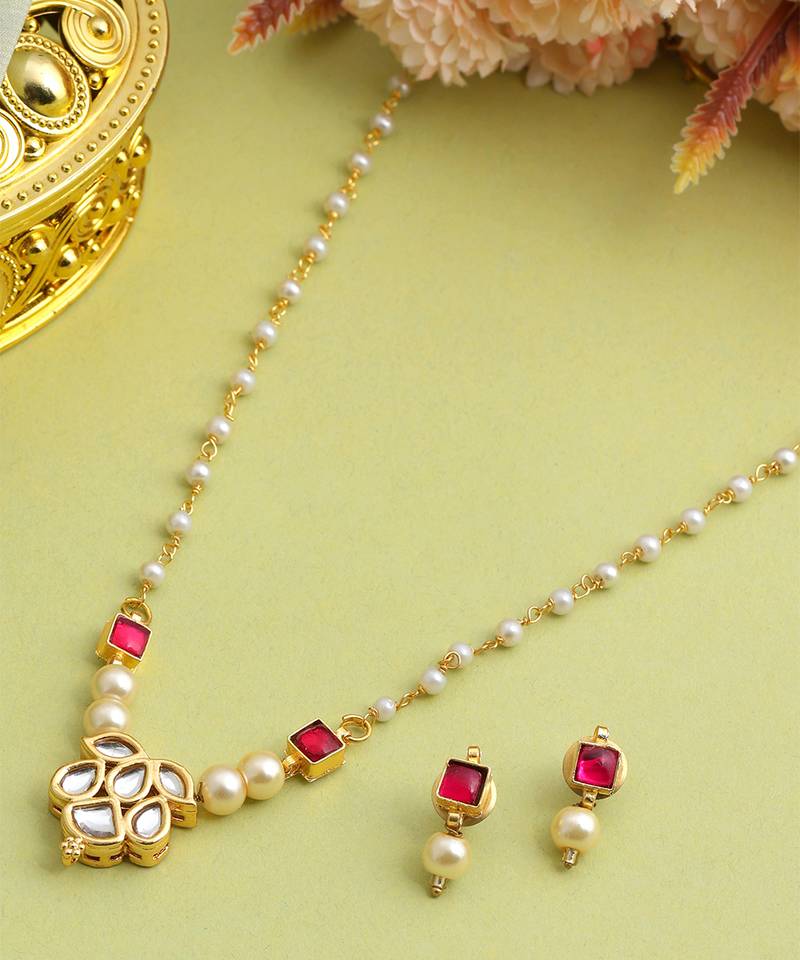 | Product Description | This Gold Plated Kundan Necklace Set Features Vibrant Red Stones That Create A Striking Festive Look. Designed With Intricate Detailing, It Brings Out Traditional Elegance And Royal Charm. Perfect For Bridal And Special Occasions, It Pairs Beautifully With Ethnic Outfits For A Grand Finish.