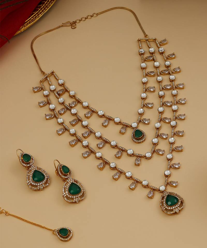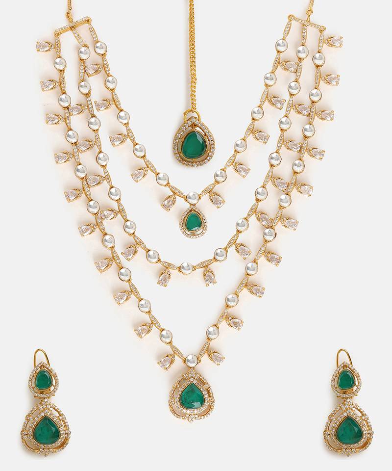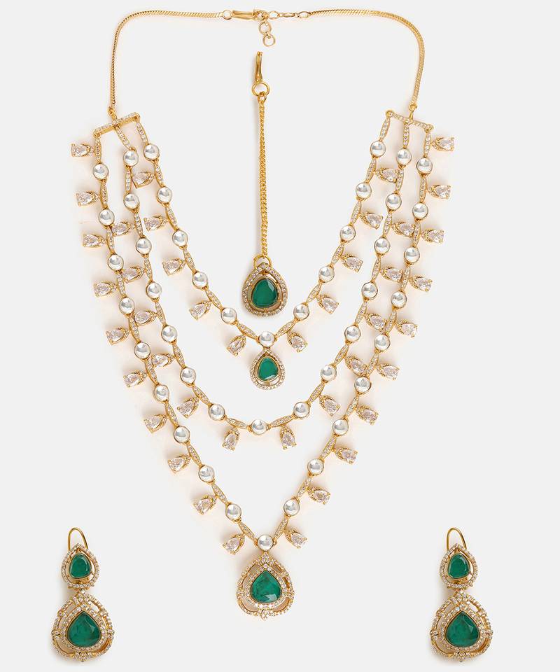 Product Name Gold Plated Kundan Green Stone Layered Necklace Set