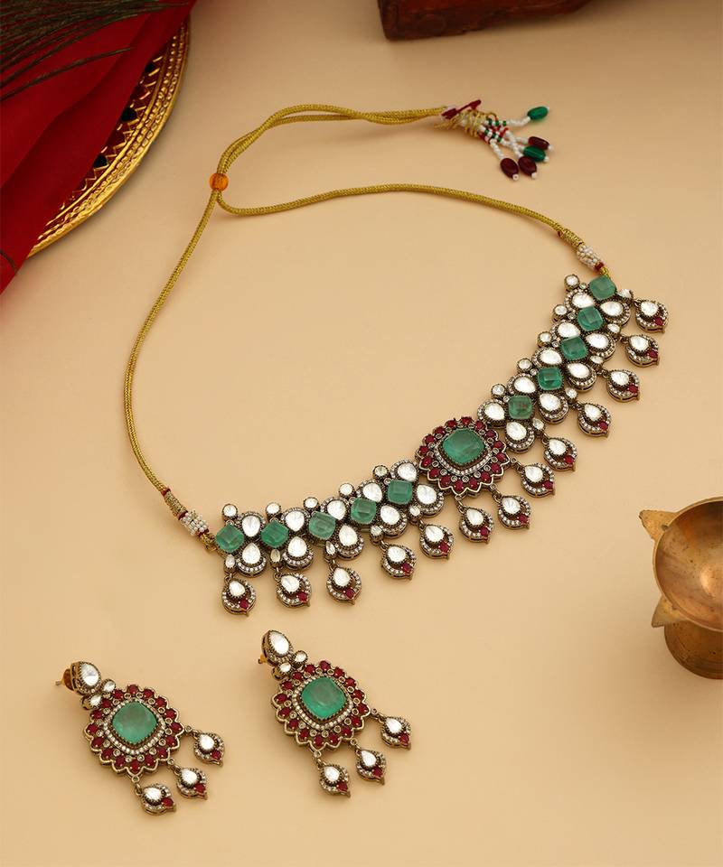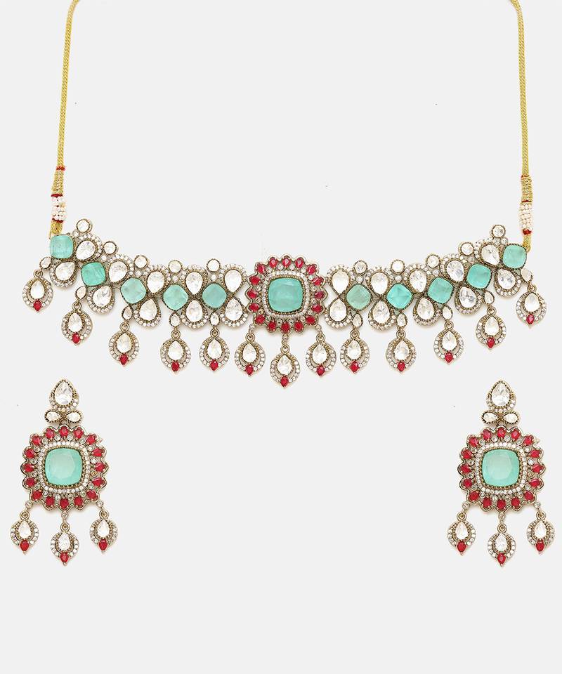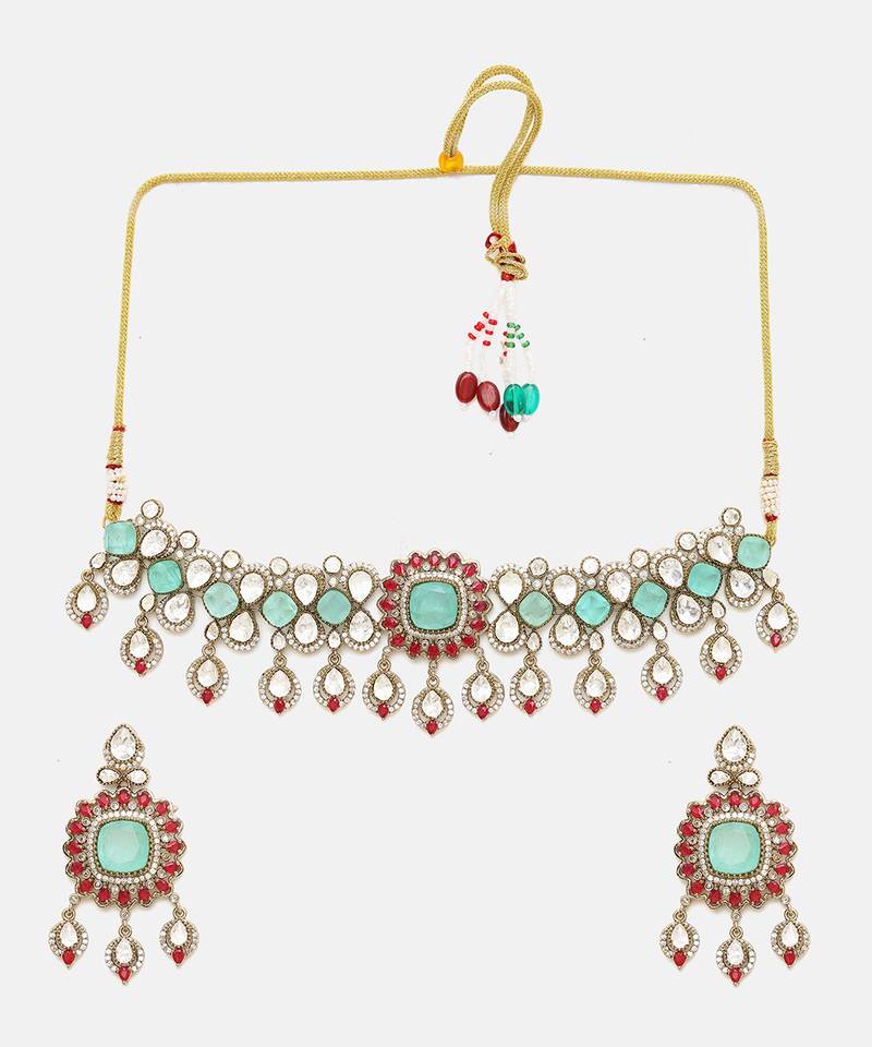 | Product Name | Gold Plated Kundan Turquoise Stone Necklace Set | |