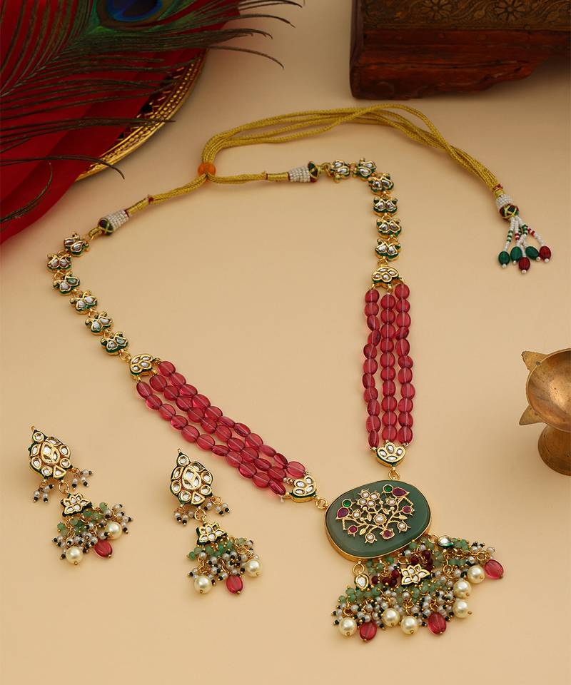 | Product Name | Gold Plated Kundan Multicolor Stones Necklace Set | |