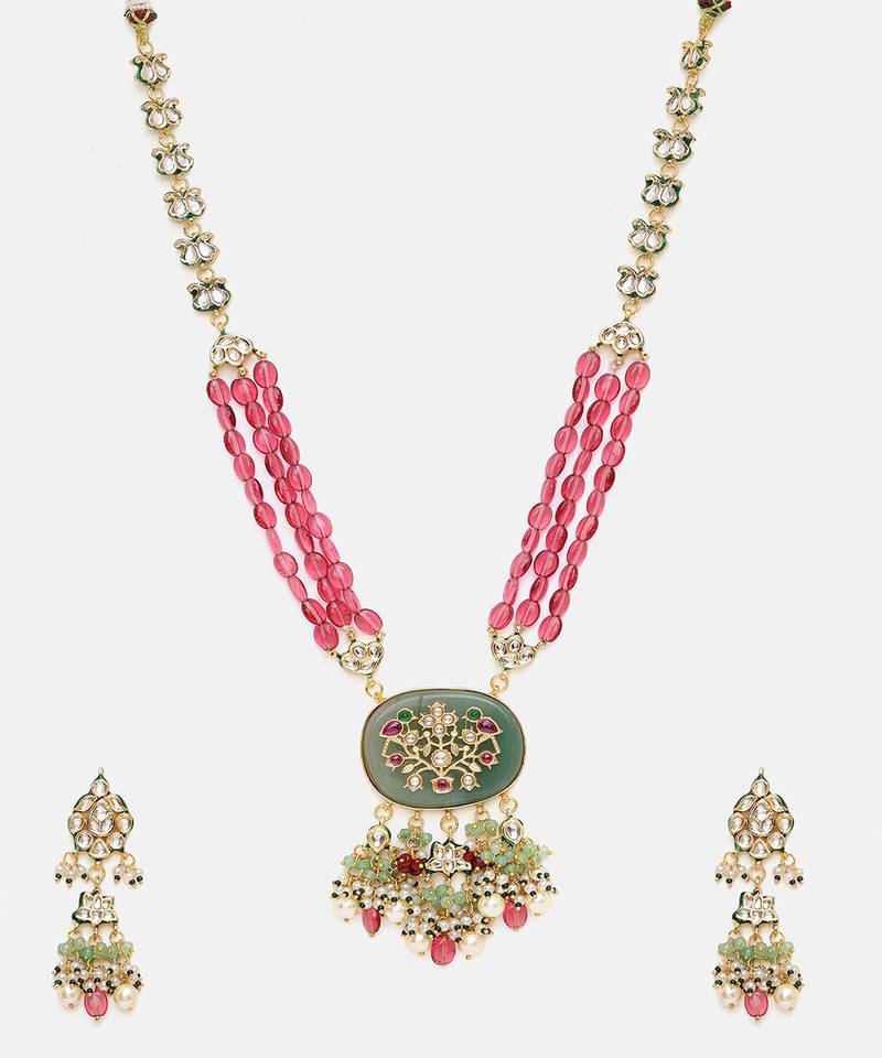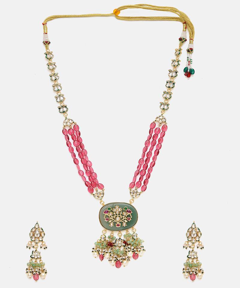 | Product Description | This Gold Plated Kundan Multicolor Stones Necklace Set Radiates Regal Elegance With Its Intricate Craftsmanship And Rich Detailing. Adorned With Classic Kundan Work And Vibrant Green Accents, It Adds A Festive, Traditional Charm. Perfect For Weddings, Celebrations, And Special Occasions, It Beautifully Complements Ethnic And Bridal Ensembles With Timeless Sophistication.