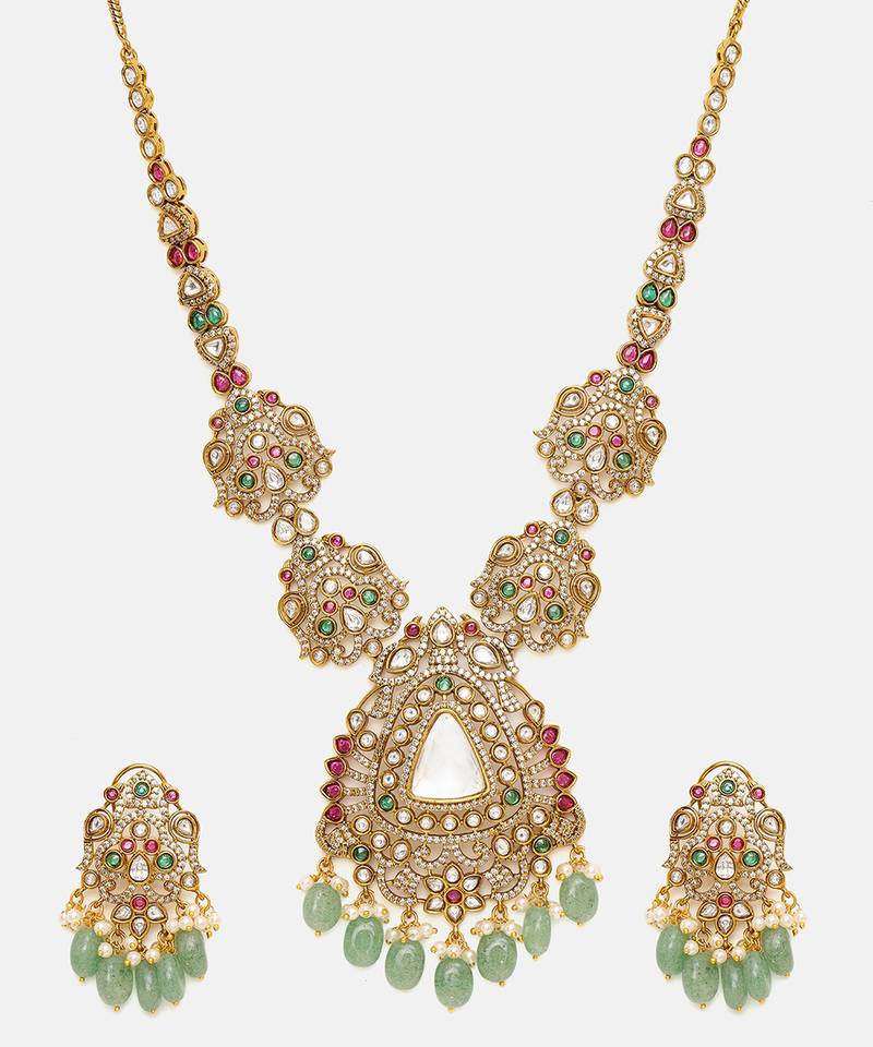| Product Name | Gold Plated Kundan Green Stones Necklace Set | |
